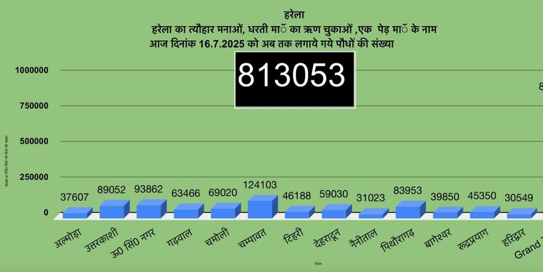 देहरादून में मुख्यमंत्री द्वारा किए गए पौधारोपण से इस अभियान की शुरुआत हुई है। यह केवल सरकारी आयोजन नहीं, बल्कि गांवों, शहरों, स्कूलों, आंगनबाड़ी, महिला समूहों और युवाओं की सक्रिय भागीदारी से एक राज्यव्यापी हरित आंदोलन बन गया है। प्रदेश के 13 जिलों में हज़ारों स्थानों पर पौधारोपण किया गया है। अब तक कुल 8 लाख 13 हजार से अधिक पौधे लगाए जा चुके हैं।