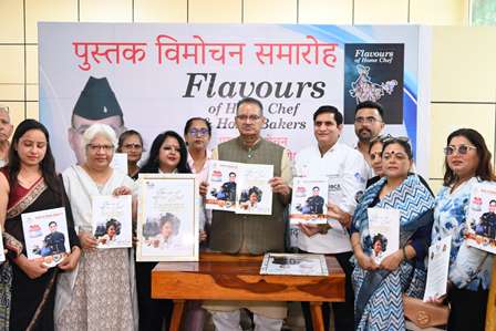 फ्लेवर्स ऑफ होम शेफ्स और टेस्ट ऑफ होम बेकर्स पुस्तकों का विमोचन करते कैबिनेट मंत्री गणेश जोशी